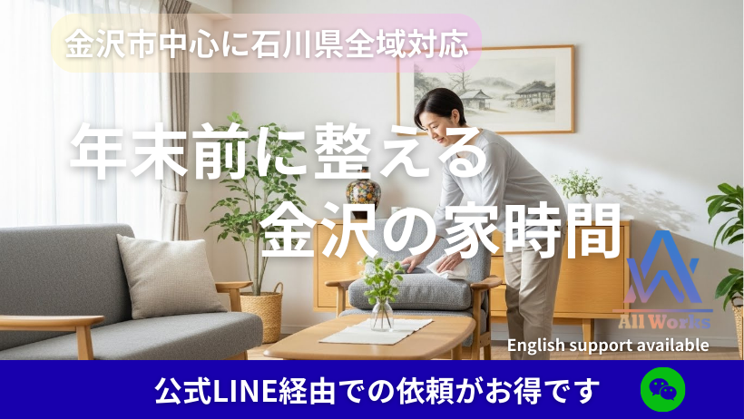 冬は、部屋のごちゃつきが気になりやすい季節。 「ついで依頼」で買取・回収・電気工事をまとめて進めれば家が軽くなります。 AllWorksは金沢市中心に石川県全域対応。LINE写真見積もり&クーポンあり。