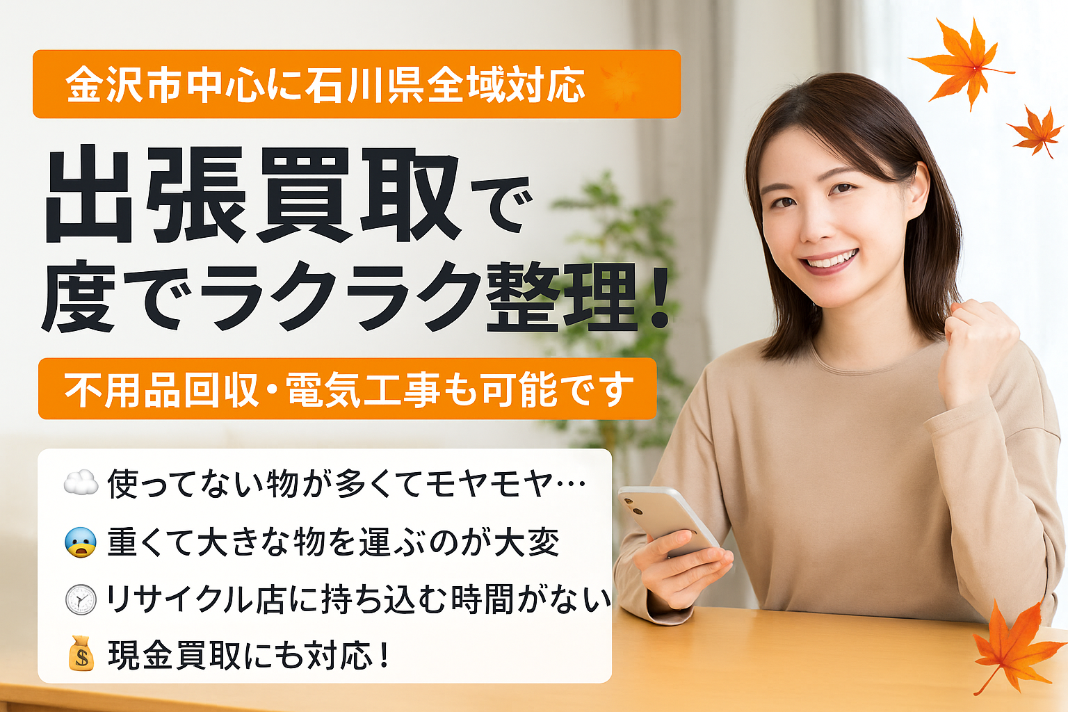 金沢市中心に石川県全域対応✨秋の不用品買取は出張でラクラク整理!